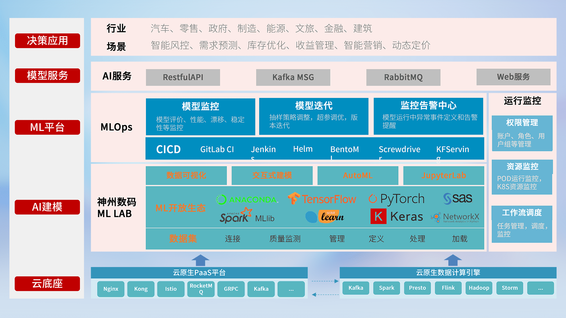 数据+模型双引擎驱动,,,,面向智能服务场景,,,,快速灵活利用AI技术,,,,支持业务决策,,,,助力企业智能化转型破局。。。。